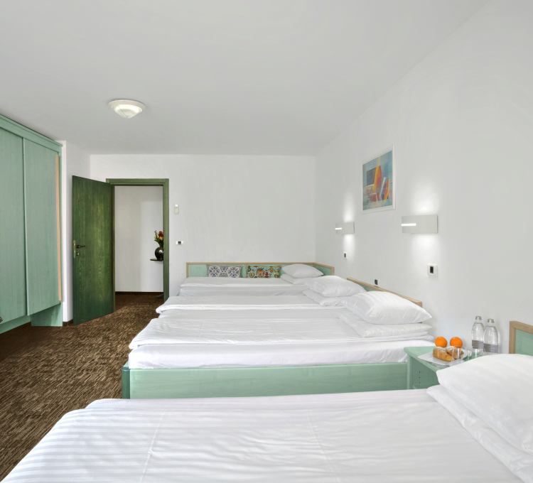 The air-conditioned room offers four single beds, a wardrobe, a writing desk, cable TV, and free Wi-Fi. The private bathroom is equipped with a shower cabin, complimentary toiletries, and a hairdryer. Smoking is not allowed in the rooms. Rooms on the upper floors are accessible only by stairs.