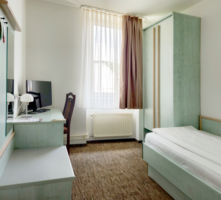 Camera climatizzata con letto singolo, armadio guardaroba, scrivania, TV via cavo e Wi-Fi gratuito. Il bagno privato è dotato di box doccia, asciugacapelli e set di cortesia gratuito. Non è consentito fumare in camera. Le camere sono accessibili solo per mezzo di scale.
