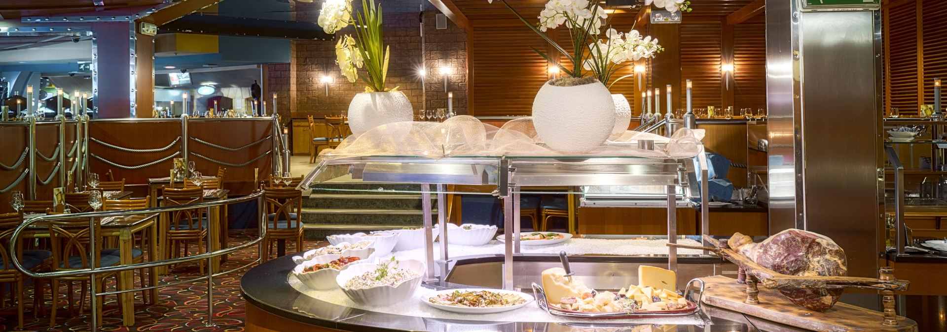 Ponudba je vedno pestra: različne sveže solate, hladne predjedi, izvrstne testenine, pripravljene na nešteto načinov, ter zelenjavne, mesne in ribje jedi, slaščice in sladoled. Poleg vsakodnevnega izbora jedi boste lahko v restavraciji Oceanis poskusili tudi jedi različnih tematskih kuhinj (poletna, velikonočna, Martinova …), degustacije in jedi meseca!